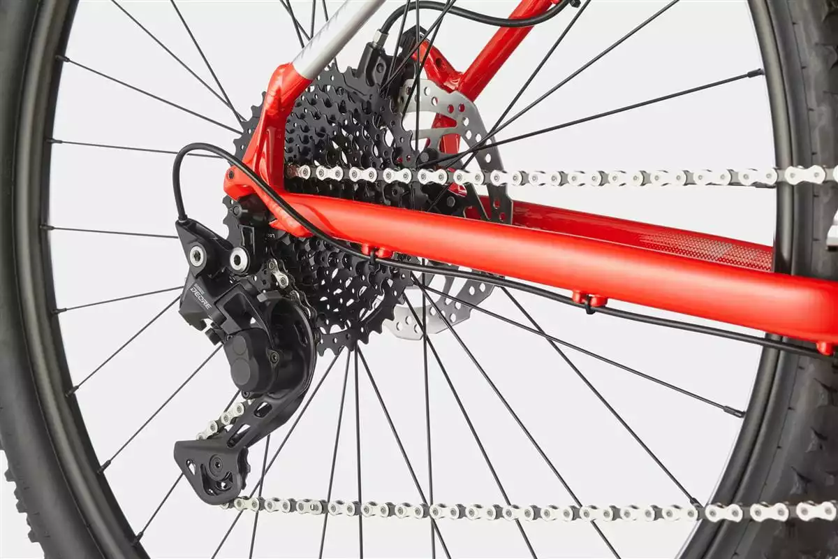 Für einen cleanen Look und gleichzeitig einfache Wartung werden der Schaltzug und das Kabel für die Teleskopstütze(optional) sauber durch die StraightShot-Öffnunf im Unterrohr geführt, während die hintere Bremsleitung klassisch außen am Rahmen verläuft.