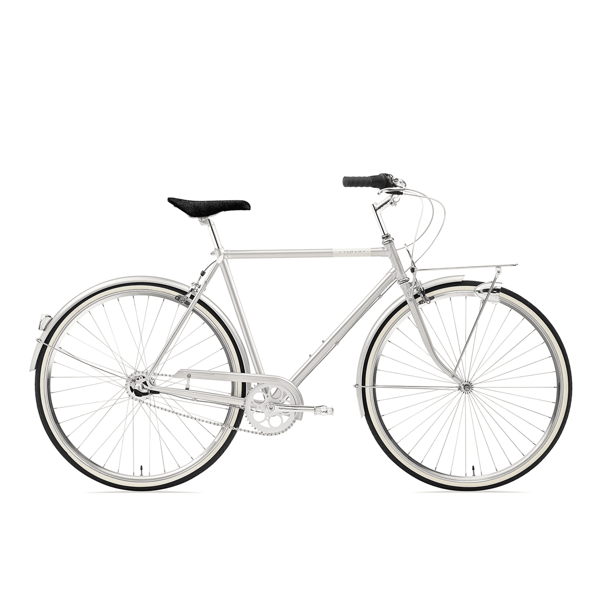 Der Caferacer ist das Brot und Butter Modell von Creme Cycles: hochwertige Lackierung mit Klarlack-Finish, polierte Felgen aus Edelstahl, gemuffter Stahlrahmen, wartungsfreie Nabenschaltung. Die halb-aufrechte Sitzposition ist sportlich-komfortabel und ideal für Alltagsfahrten. Creme Cycles verzichtet beim Caferacer auf überflüssige Spielereien und bietet ein funktionales Fahrrad in klassischem Design zu einem attraktiven Preis an.