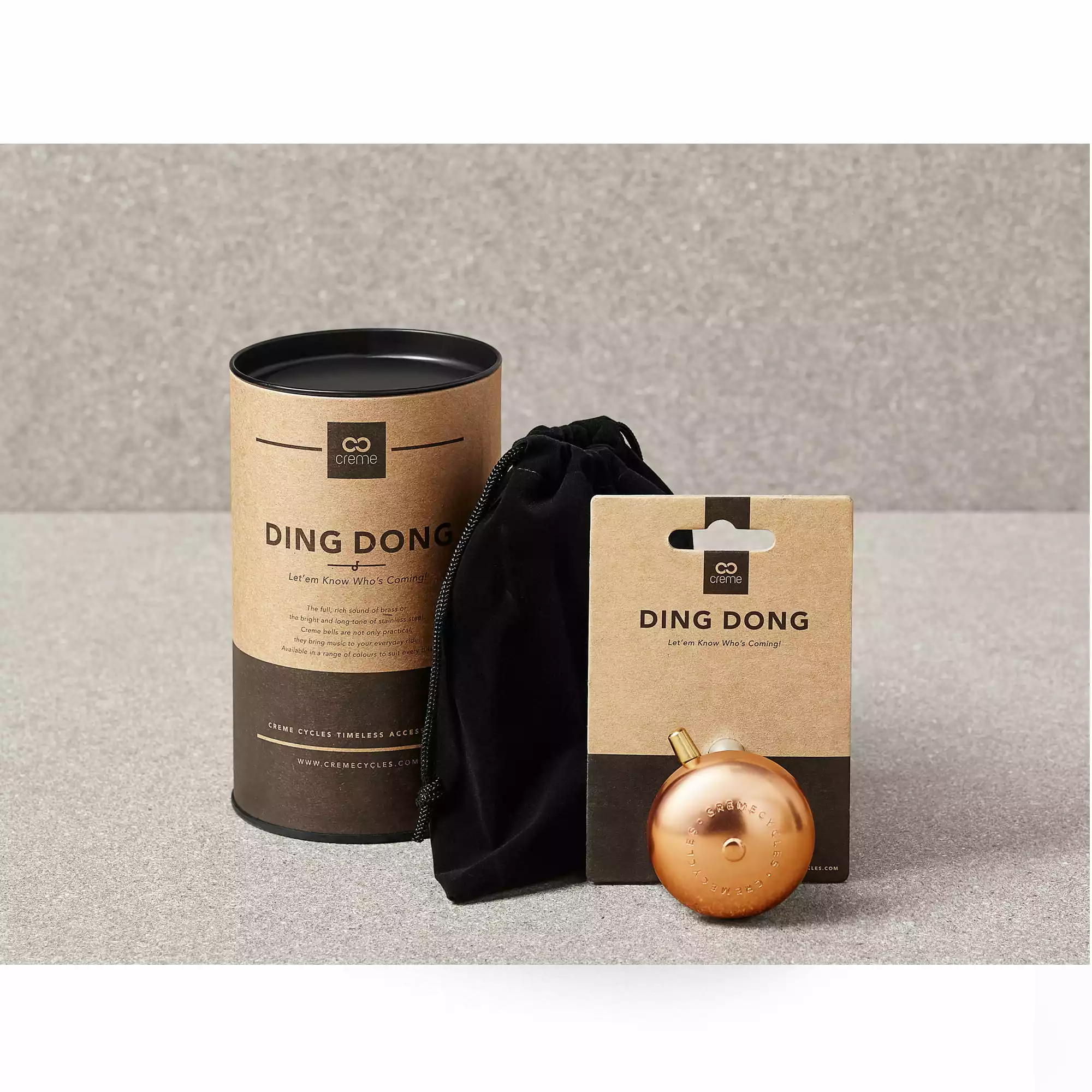 Super-stylishe Klingel von Creme Cycles mit lautem, vollen Ton. Aufwendig polierte Edelstahloberfläche und Federklöppel aus Aluminium. Die Ding Dong Bell wird in hochwertiger Verpackung ausgeliefert.