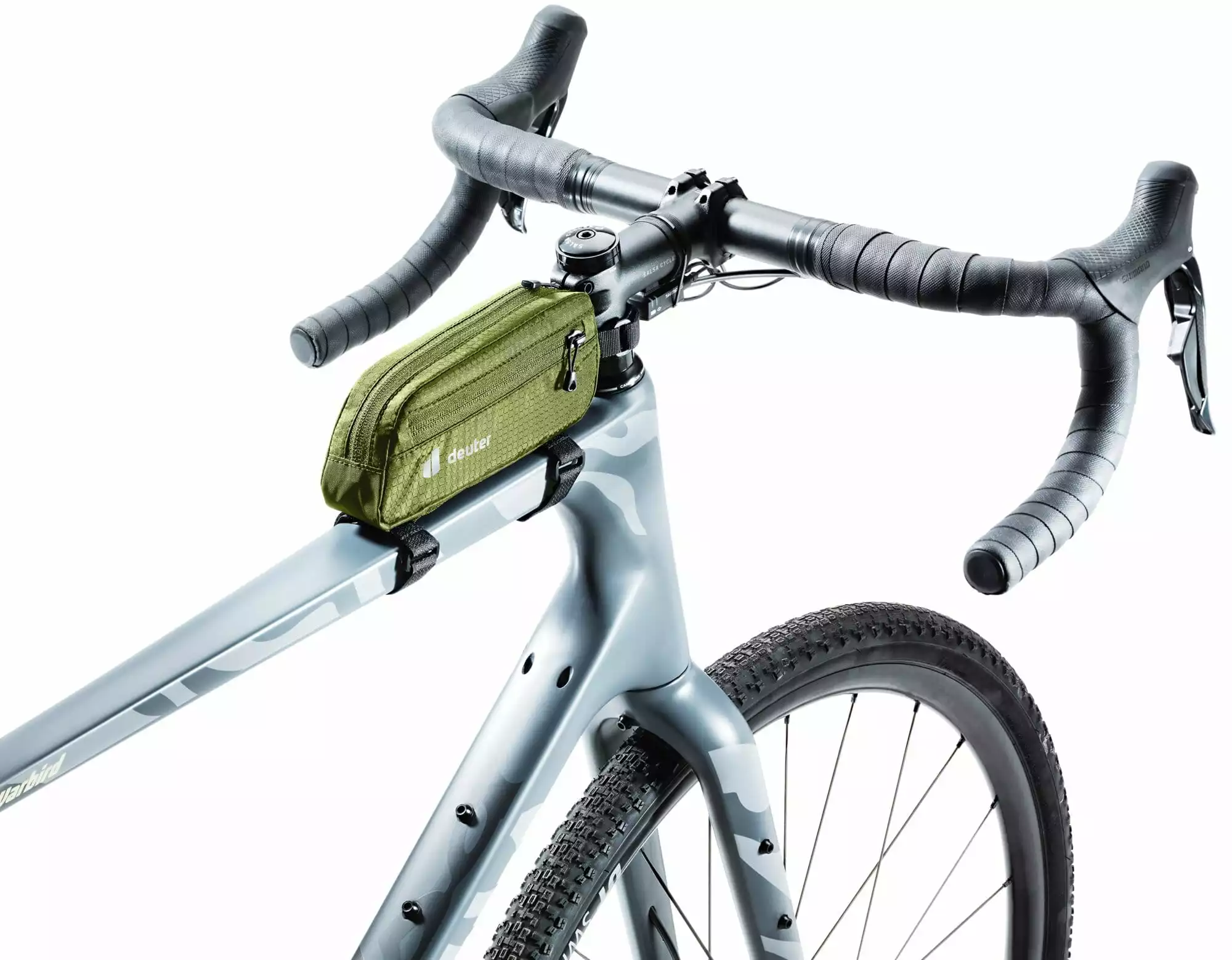 - zwei kürzbare Klettverschlüsse, um die Tasche am Oberrohr zu fixieren, einer zur Befestigung am Vorbau