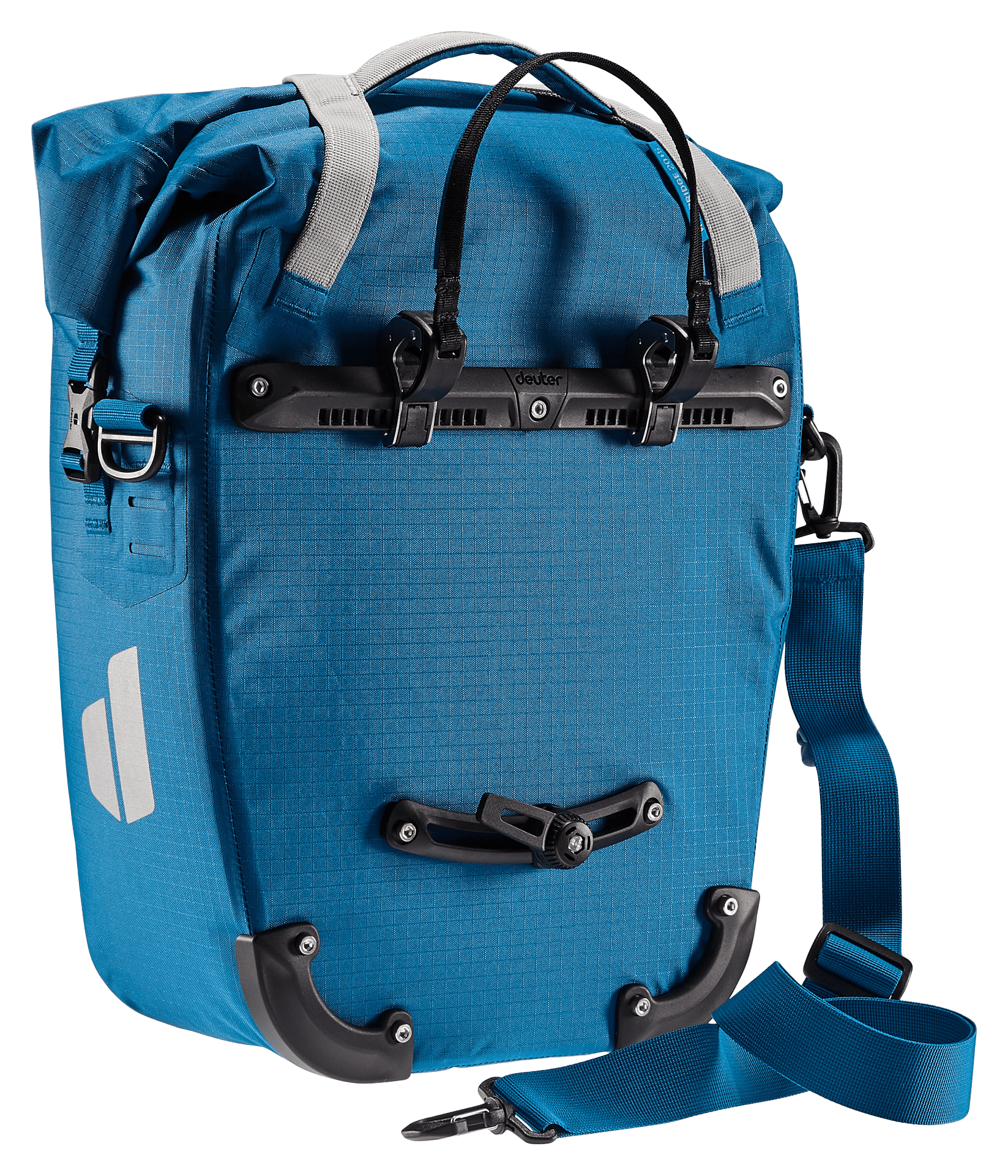 Maximale Bewegungsfreiheit bietet die neu entwickelte BagFix-Halterung. Zwei Führungsschienen und zwei Haken sorgen während den langen Fahrten für zuverlässigen Halt der Fahrradtasche. So liegt die Last zu 100% auf dem Hinterrad und nicht auf dem Rücken. Im Stand kann die Tasche mit nur einem Handgriff vom Gepäckträger abgenommen und als Schultertasche verwendet werden.