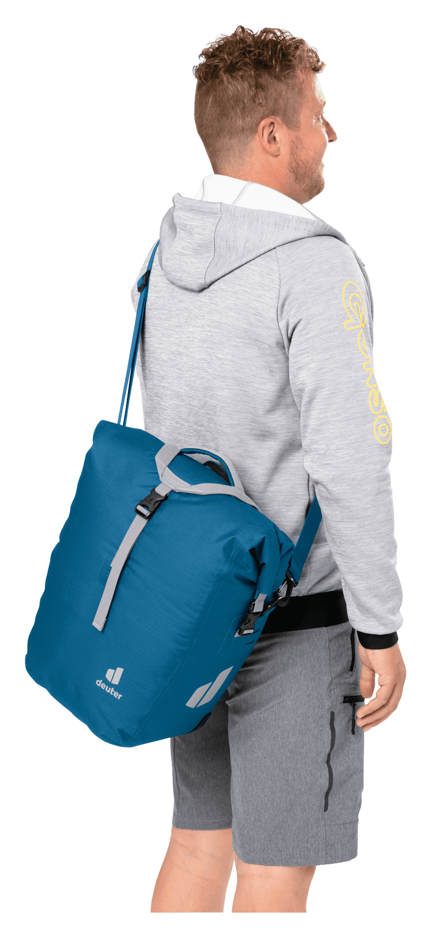 Ob reine Aufbewahrungstasche mit Organisationseinheit am Hinterrad, größere Schultertasche zum Umhängen oder praktische Tragetasche. Dank abnehmbarem Schultergurt und verstellbarem Tragegriff-Verschluss mit Universalhalterung für Isomatte oder Jacke sind dem Einsatz dieser Tasche kaum Grenzen gesetzt.