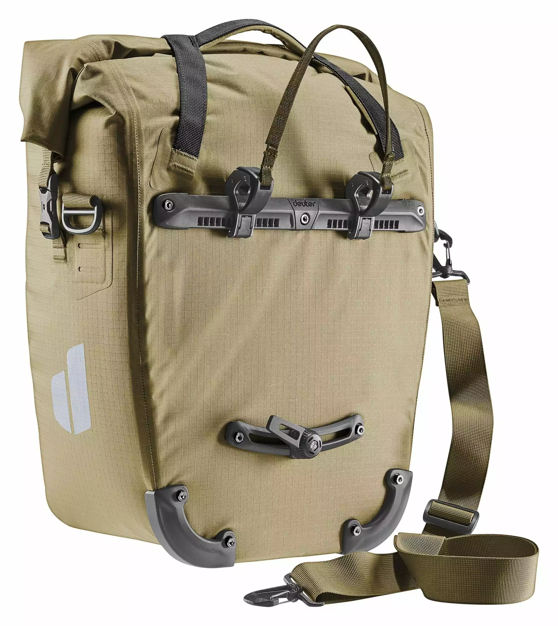 Maximale Bewegungsfreiheit bietet die neu entwickelte BagFix-Halterung. Zwei Führungsschienen und zwei Haken sorgen während den langen Fahrten für zuverlässigen Halt der Fahrradtasche. So liegt die Last zu 100% auf dem Hinterrad und nicht auf dem Rücken. Im Stand kann die Tasche mit nur einem Handgriff vom Gepäckträger abgenommen und als Schultertasche verwendet werden.