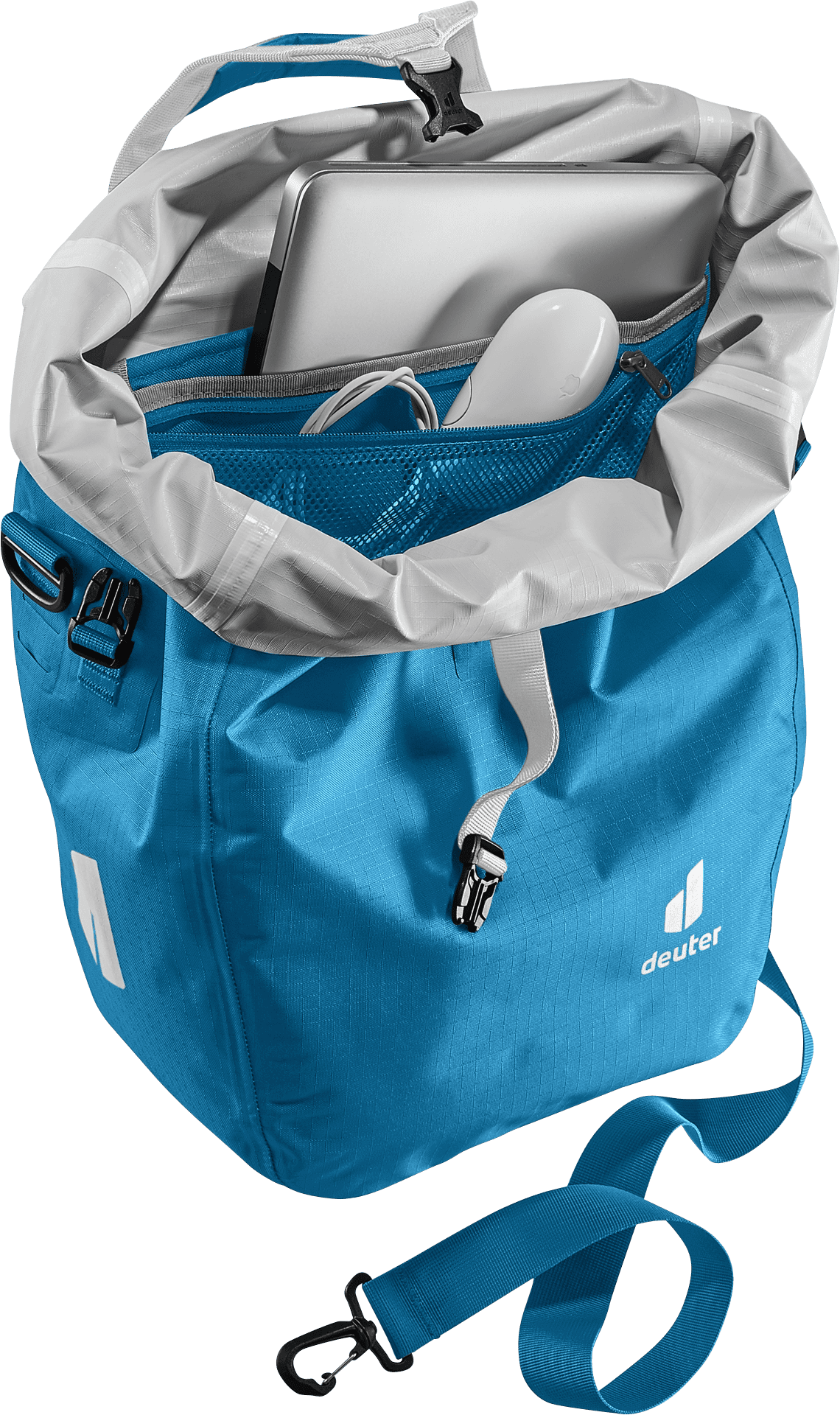 Ob reine Aufbewahrungstasche mit Organisationseinheit am Hinterrad, größere Schultertasche zum Umhängen oder praktische Tragetasche. Dank abnehmbarem Schultergurt und verstellbarem Tragegriff-Verschluss mit Universalhalterung für Isomatte oder Jacke sind dem Einsatz dieser Tasche kaum Grenzen gesetzt.