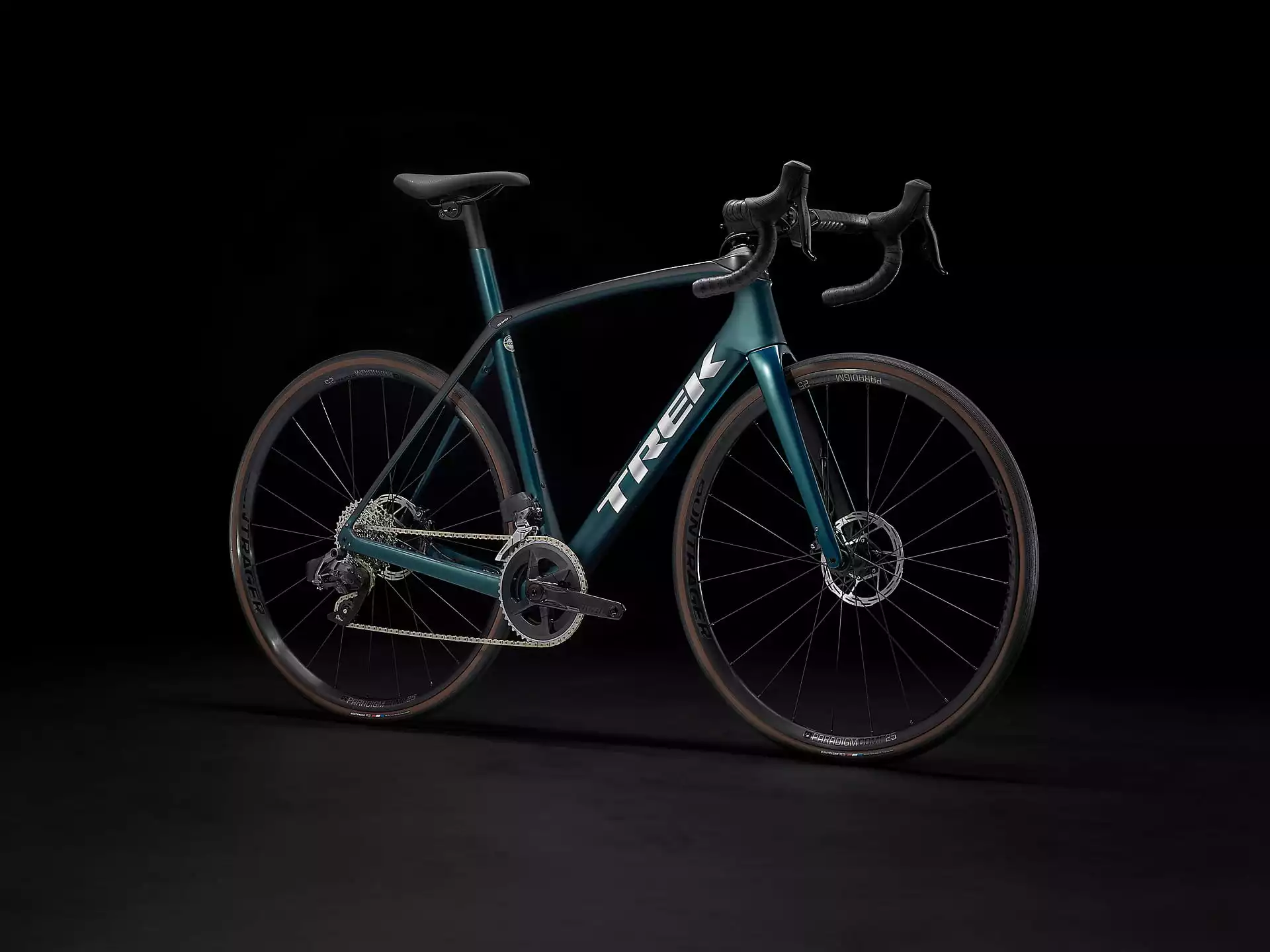 Gabel: Domane SL carbon, konischer Carbongabelschaft, interne Bremszugführung, Schutzblechösen, Flat Mount-Scheibenbremsaufnahme, 12 x 100 mm-Steckachse