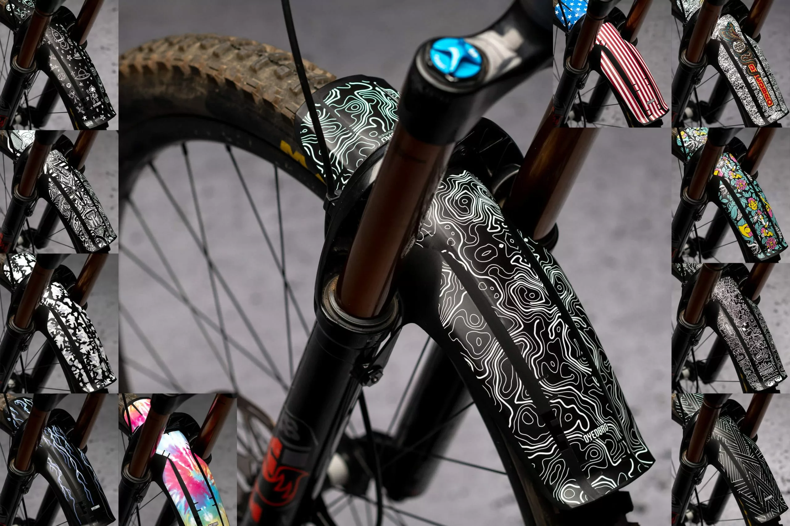 Dyedbro bietet seine 11 beliebtesten Foliendesigns für dein Bike jetzt auch als Decals für den FOX Fender an.