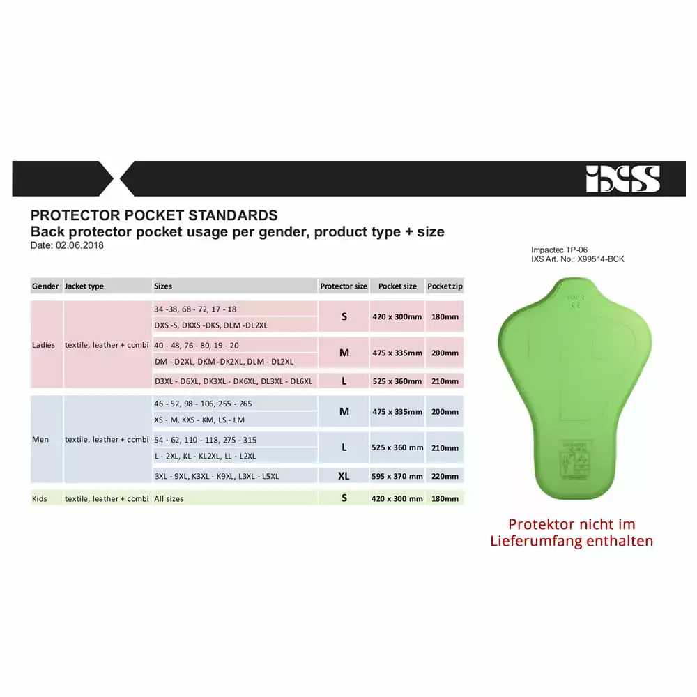 - Tasche für Rückenprotektor (optional nachrüstbar mit impacTec TP-06 (X99514), Bauart geprüft nach EN 1621-2:2014, Level 2)