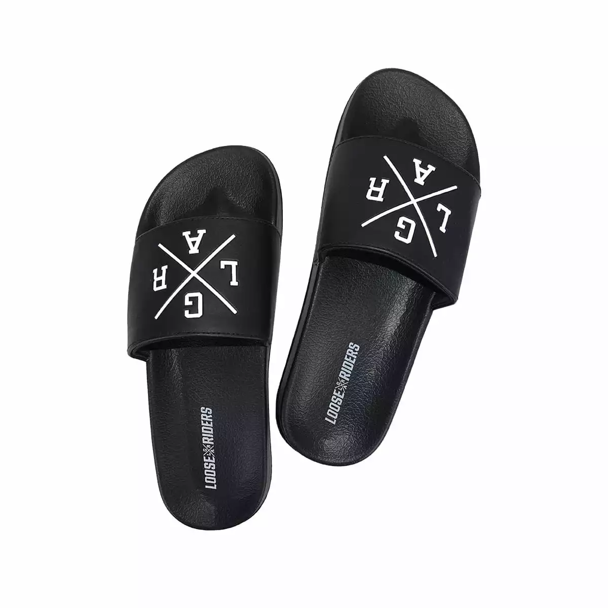 Loose Riders Pantoletten haben eine federleichte EVA-Sohle, gefüttert und gepolstert, einen PU-Riemen mit X-Logo-Prägung für Komfort und Traktionsmustersohle gegen Verrutschen.