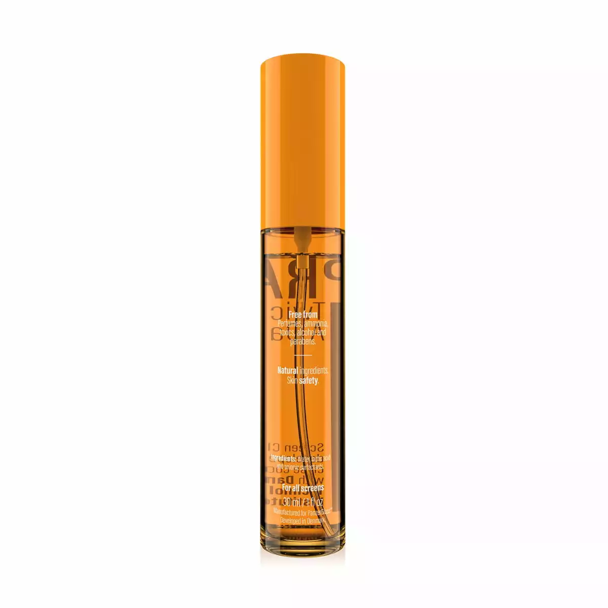 Die innovative Reinigungslösung basiert auf reinem Wasser und überwiegend natürlichen Inhaltsstoffen. PanzerGlass™SPRAY Twice A Day ist frei von Ammoniak, Duftstoffen, Parabenen, Phosphaten und ohne Alkohol, um speziell die oleophobe Beschichtung der PanzerGlass™-Schutzgläser zu erhalten, aber auch zum Schutz aller anderen empfindlichen Oberflächen.