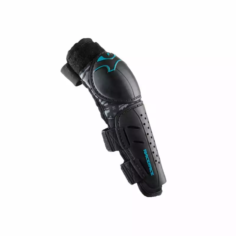 Jugend spezifischer Ellbogenprotektor von Race Face. Das Zweiteilige Design und das D-Ring Verschlusssystem machen ihn sehr komfortabel.