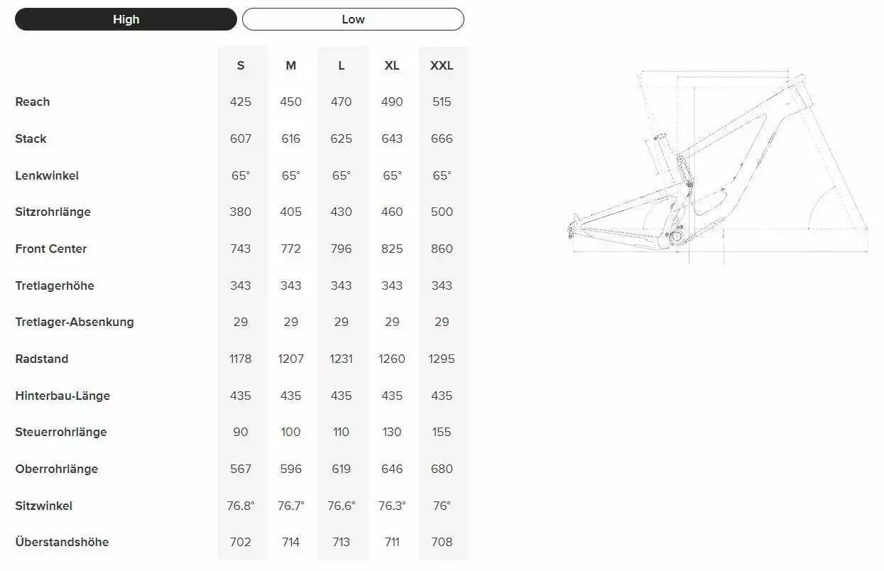 Der steile Sitzwinkel hält den Fahrer auf den steilen Anstiegen, die zu den noch steileren Abfahrten führen, immer zentral in der richtigen Position. Der Sitzwinkel wird mit zunehmender Rahmengröße steiler, sodass die Balance in jeder Größe passt.