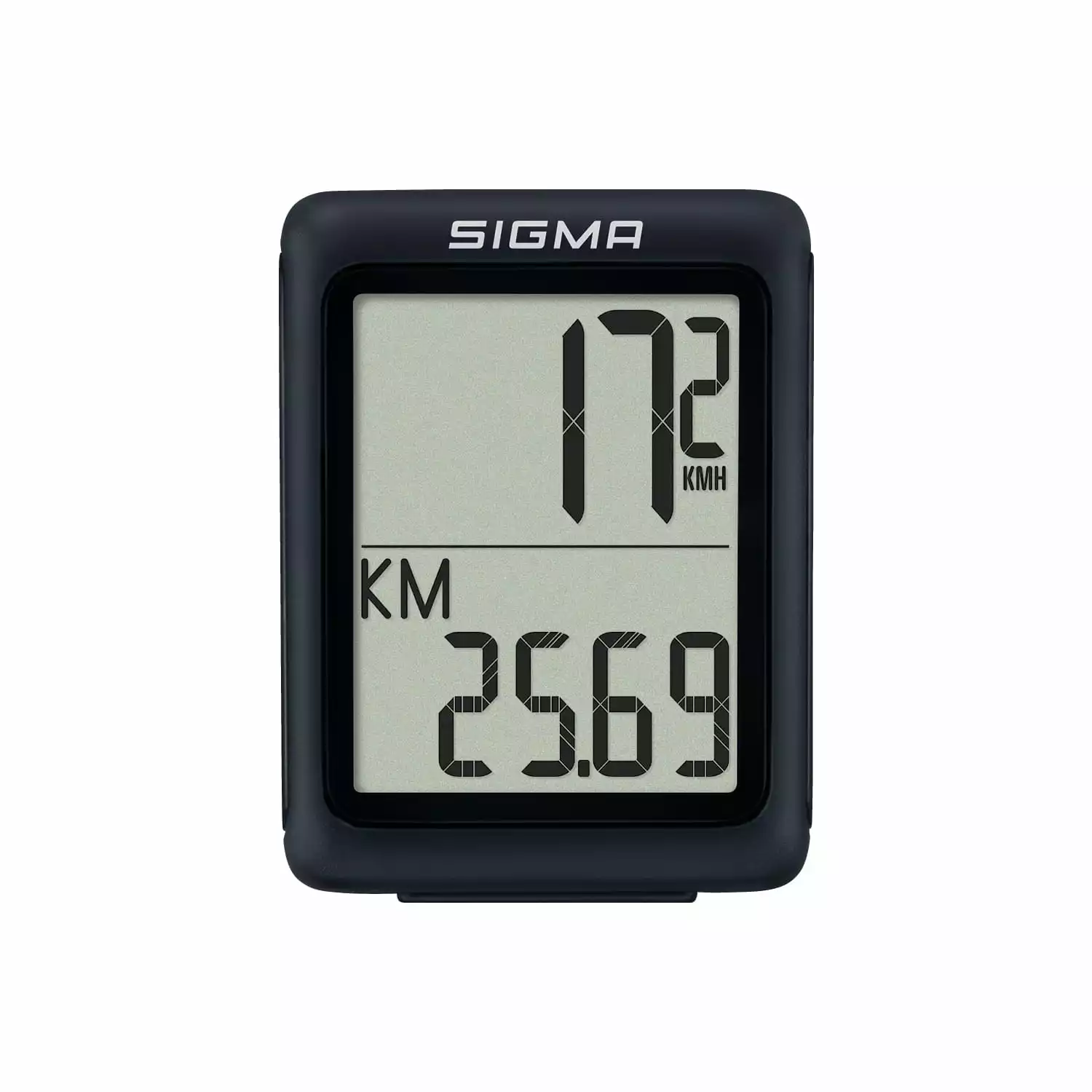 Der kleinste SIGMA Bike Computer ist kompakt und zeigt mit Geschwindigkeit, Tageskilometern, Gesamtkilometern, Fahrzeit und Uhrzeit die fünf wichtigsten Basisfunktionen an, die Radfahrer gern im Blick haben.
