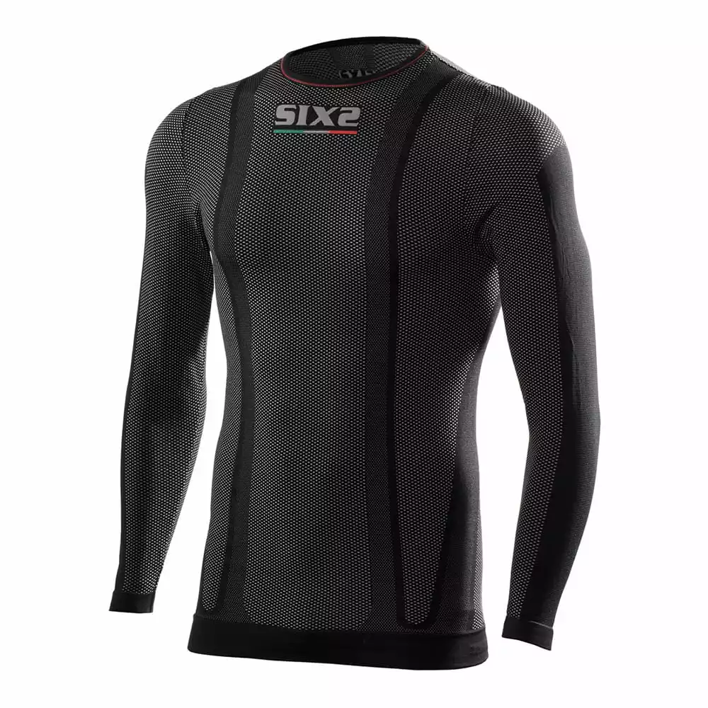 Das SIXS Langarm-Rundhals-Shirt aus Carbon Underwear® Material lässt die Haut atmen und sorgt für eine Wärmeregulierung des Körpers bei jedem Wetter (outdoor und indoor). Die langen Ärmel umhüllen die Arme vollständig, halten die Haut frisch und liegen zwischen Haut und Überkleidung. Gleichzeitig schützen sie vor kaltem Luftzug, wenn eine Kurzarmvariante über dem Shirt getragen wird.