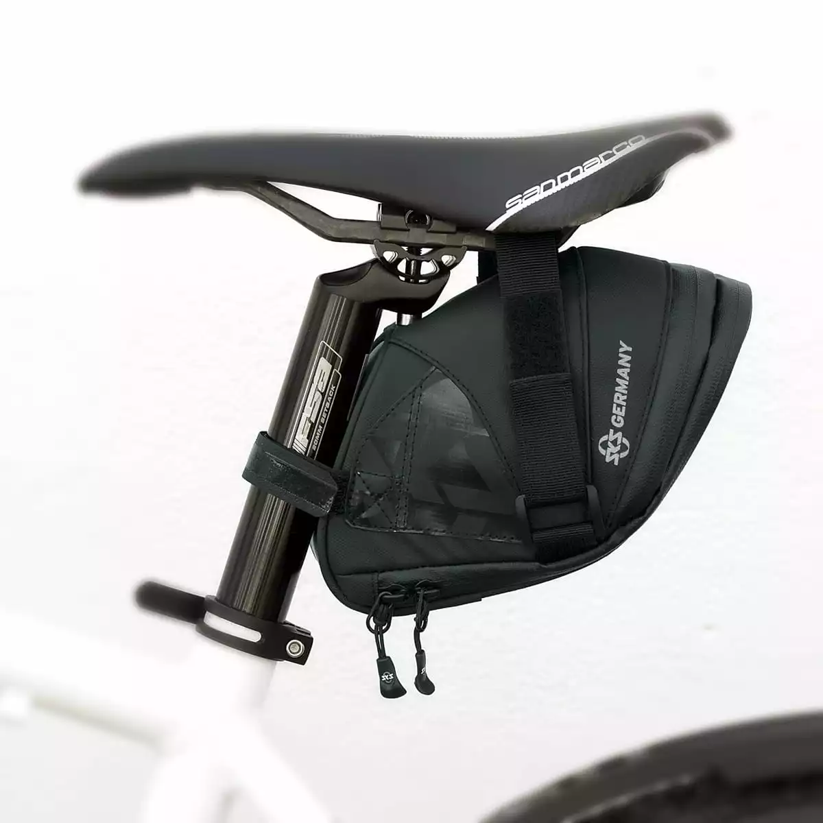Robust und strapazierfähig. Widerstandsfähige Materialien aus gummiertem, wasserabweisendem Gewebe machen die Fahrradtasche Explorer zu einem Muss für jeden Mountainbiker. Reflektierende Elemente sorgen für Sicherheit im Dunkeln. Sie bieten ausreichend Platz für Tools, Ersatzschlauch und sonstige Kleinigkeiten und überzeugen mit weiteren Features wie laminierten Reißverschlüssen mit ergonomischem Easy-Zip, praktischen Innentaschen oder dem orangefarbenen Innenfutter zum leichteren Finden der Utensilien.