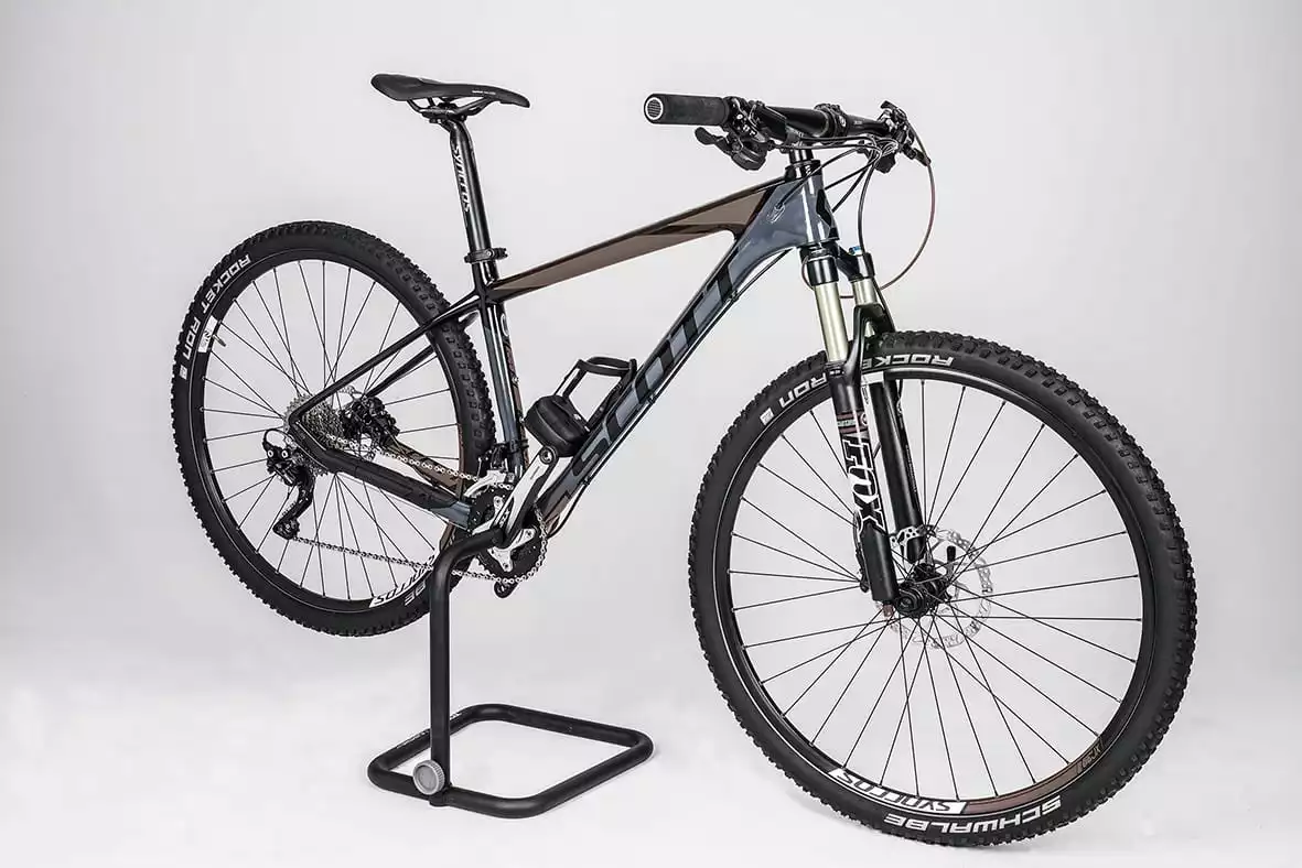 Minimalistischer faltbarer Ständer für Fahrräder, bei denen eine Kurbel* mit hohler Achse verbaut ist. Einfach das Hinterrad anheben, um das Fahrrad in Sekundenschnelle auf den Fahrradständer zu montieren.
