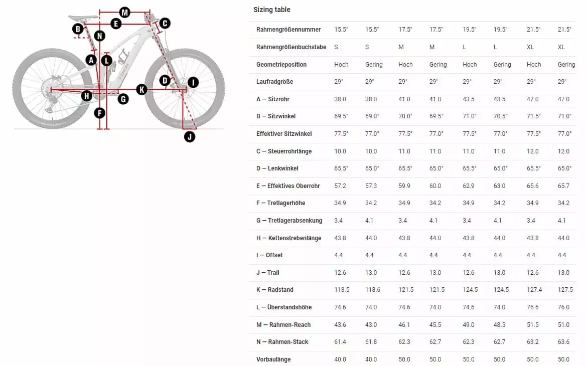 Rahmen: OCLV Mountain Carbon, herausnehmbarer Akku, interne Zugführung, Umlenkhebel aus Aluminium, Sitzrohrdurchmesser 34,9 mm, Aufnahme für obere Kettenführung, 55 mm Kettenlinie, Mino Link, ABP, Boost148, UDH, 140 mm Federweg
