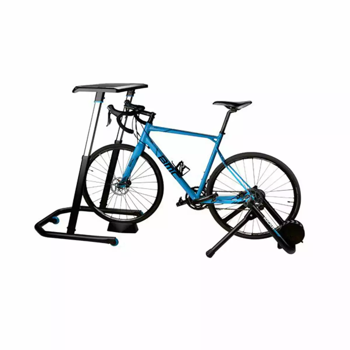 - stellen Sie es auf und befestigen Sie das Tablet oder Smartphone auf dem Desk. So können Sie auf dem KICKR die Radfahr-App oder beim Arbeiten den Bildschirm sehen